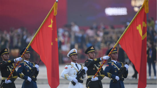Le président chinois Xi Jinping a rendu les hommages aux drapeaux du Parti communiste chinois (PCC), de la nation et de l'Armée populaire de libération au début de sa revue des forces armées mardi matin.