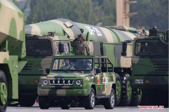Une formation de missiles conventionnels et nucléaires Dongfeng-26 a défilé mardi à Beijing lors du défilé militaire marquant le 70e anniversaire de la fondation de la République populaire de Chine.