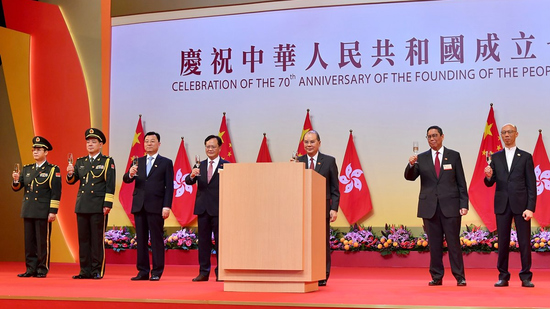 Une cérémonie de lever de drapeau s'est déroulée le 1er octobre matin place Golden Bauhinia pour marquer la fête nationale. Elle a été suivie d'une grande réception organisée par le gouvernement de la région administrative spéciale de Hong Kong (RASHK).