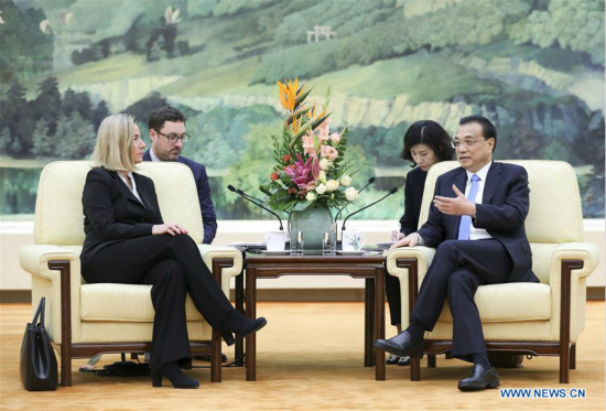 Le Premier ministre chinois, Li Keqiang, a rencontré jeudi Federica Mogherini, haute représentante de l'Union européenne (UE) pour les affaires étrangères et la politique de sécurité et vice-présidente de la Commission européenne.