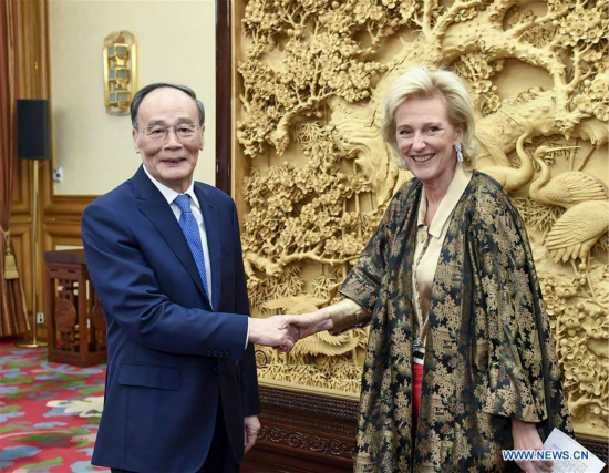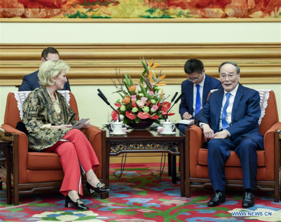 Le vice-président chinois Wang Qishan a rencontré lundi la princesse Astrid de Belgique, qui est à la tête d'une délégation économique et commerciale en Chine.