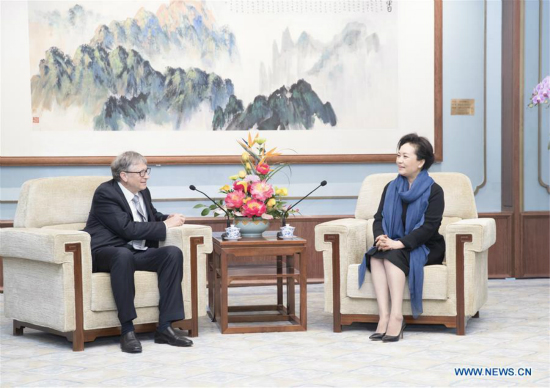 Peng Liyuan, épouse du président chinois, Xi Jinping, et ambassadrice de bonne volonté de l'Organisation mondiale de la santé pour la tuberculose et le VIH/SIDA, a rencontré jeudi à Beijing Bill Gates, co-président de la fondation Bill et Melinda Gates.