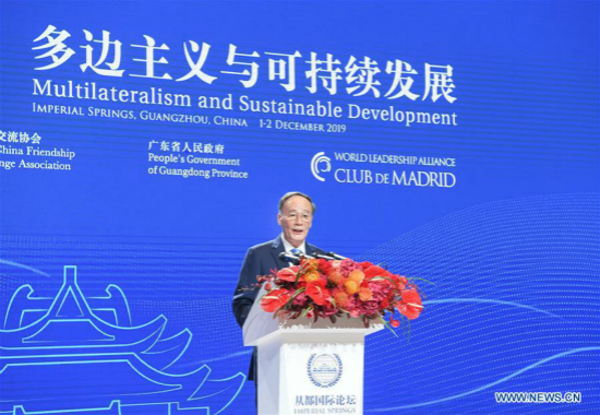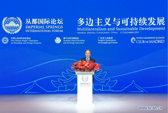 M. Wang s'est ainsi exprimé lors de la cérémonie d'ouverture du 2019 Imperial Springs International Forum, organisée à Guangzhou, capitale de la province chinoise du Guangdong (sud).