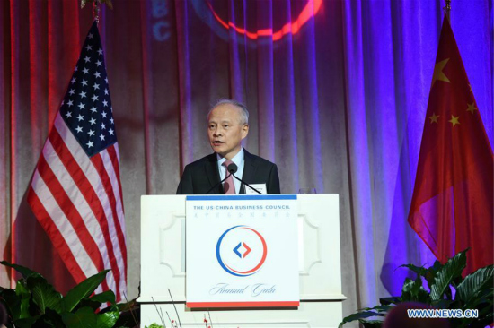 L'ambassadeur de Chine aux Etats-Unis Cui Tiankai a déclaré mercredi soir à Washington que les relations sino-américaines étaient à un "carrefour critique" et il a mis en garde contre des "forces destructrices" dans les relations bilatérales.