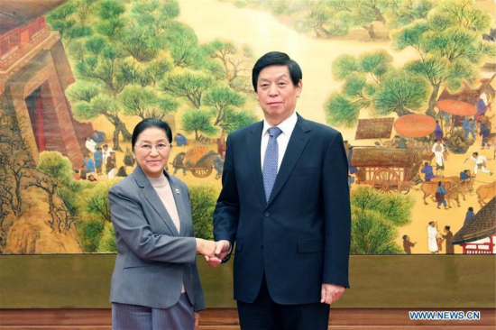 Le plus haut législateur chinois, Li Zhanshu, s'est entretenu, mardi à Beijing, avec son homologue laotienne, Pany Yathotou.