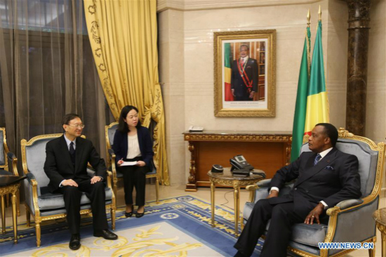 Yang Jiechi, membre du Bureau politique du Comité central du Parti communiste chinois (PCC), a rencontré jeudi Denis Sassou Nguesso, président de la République du Congo.