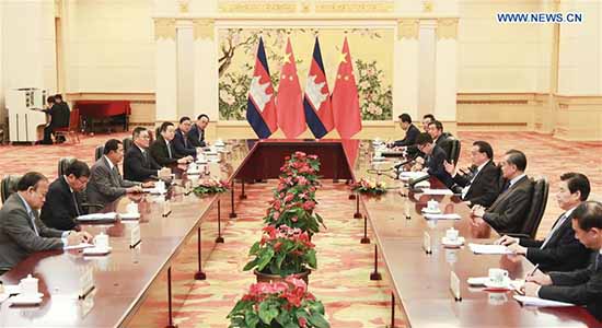 Le Premier ministre chinois, Li Keqiang, a rencontré mercredi son homologue cambodgien, Samdech Techo Hun Sen, au Grand Palais du Peuple à Beijing.