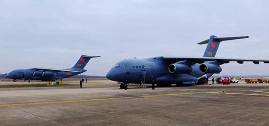 T?t dans la matinée du 13 février, les forces aériennes de l'Armée populaire de libération a envoyé un total de 11 avions de transport de 3 types, dont des Yun-20, des Il-76 et des Yun-9, qui ont décollé d'Urumqi, Shenyang, Xining, Tianjin, Zhangjiakou, Chengdu, Chongqing et 7 autres aéroports pour transporter par avion du personnel et du matériel jusqu'à Wuhan pour soutenir les équipes médicales du Hubei.