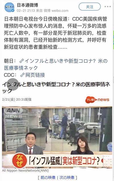 Les informations se sont ensuite rapidement propagées sur les réseaux sociaux chinois. Au moment de la mise sous presse, elles avaient re?u plus de 220 000 avis positifs sur Sina Weibo depuis que le message a été mis en ligne dans la soirée du 21 février, recevant plus de 14 000 commentaires, beaucoup supposant que le COVID-19 pourrait en fait provenir des états-Unis, et que c'est pourquoi tant de gens y sont morts en raison de ? sympt?mes de la grippe ?.