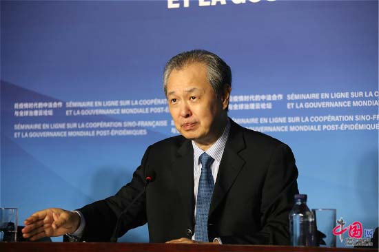 Kong Quan, directeur adjoint de la commission des Affaires étrangères de la Conférence consultative politique du peuple chinois (CCPPC), ancien directeur adjoint du bureau du Groupe dirigeant central chargé des Affaires étrangères et ancien ambassadeur de Chine en France, a appelé à cette occasion à une coopération plus étroite dans la conjoncture actuelle. Selon lui, la Chine et la France cherchent depuis longtemps à cultiver les terrains d'entente tout en surmontant les divergences. Les deux pays attachent tous les deux une grande importance au multilatéralisme et la mondialisation. En ce moment critique, la Chine et l'Europe devraient abandonner les soup?ons et les accusations et renforcer les échanges et les dialogues afin de relever ensemble les défis.