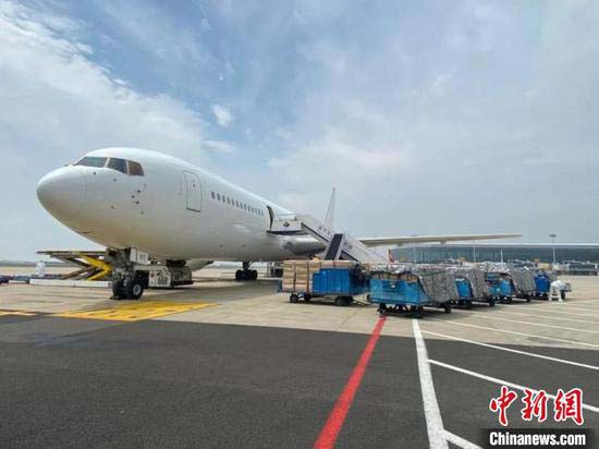 Un avion spécialement affrété transportant 5,83 millions de masques est prêt à décoller de l'aéroport Longwan de Wenzhou, dans la province du Zhejiang (lest de la Chine) . (Photo fournie à China News Service)