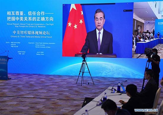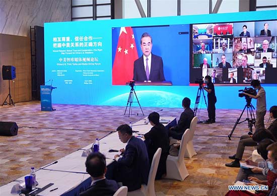 Wang Yi, conseiller d'Etat et ministre des Affaires étrangères de la Chine, a fait jeudi trois propositions pour remettre les relations sino-américaines sur la bonne voie, lors de son discours au Forum des médias des think tanks sino-américains.
