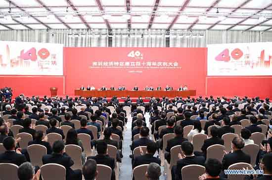 La Chine a organisé mercredi une grande réunion pour célébrer le 40e anniversaire de l'établissement de la Zone économique spéciale (ZES) de Shenzhen dans cette ville en plein essor située dans la province du Guangdong (sud).