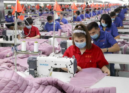 Des ouvriers confectionnent des manteaux en duvet dans une usine du comté de Jiashi, dans la région autonome ou?ghoure du Xinjiang (nord-ouest de la Chine). (Wang Zhuangfei / China Daily)