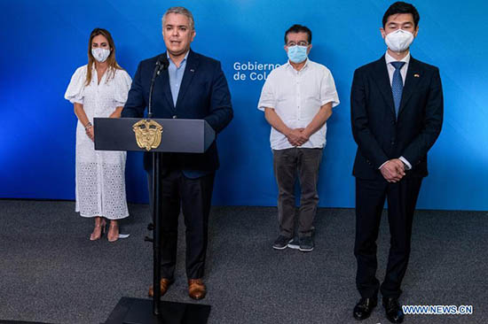 Le président colombien Ivan Duque a remercié la Chine pour le nouveau lot de vaccins Sinovac contre le COVID-19 qui est arrivé samedi à Bogota et sa contribution au programme de vaccination national de la Colombie.