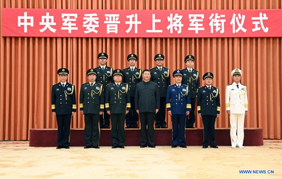 Les officiers promus sont Wang Xiubin, commandant du commandement du théatre sud de l'Armée populaire de libération (APL), Xu Qiling, commandant du commandement du théatre ouest de l'APL, Liu Zhenli, commandant des forces terrestres de l'APL et Ju Qiansheng, commandant de la Force de soutien stratégique de l'APL.