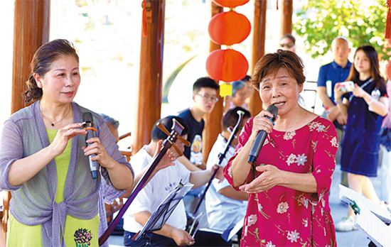 Des résidents interprètent l'opéra Shaoxing, l'un des genres d'opéra chinois les plus populaires, dans un village de Huzhou, dans la province du Zhejiang (est de la Chine), le 14 juillet. (Zhu Xingxin / China Daily)