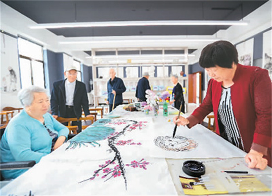 Une personne agée peint dans un centre de soins de la ville de Qingyang, dans la province du Gansu (nord-ouest de la Chine). (Photo / Xinhua)