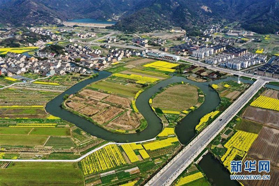Photo aérienne pris le 26 mars 2021, montrant le paysage printanier de l'?le de Jintang, district de Dinghai, ville de Zhoushan, dans la province du Zhejiang (est de la Chine) qui est désignée en tant que zone de démonstration de prospérité commune. (Yao Feng / Xinhua)