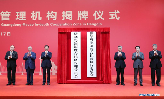 Le vice-Premier ministre chinois Han Zheng a participé vendredi à la cérémonie d'inauguration des Organisations administratives de la Zone de coopération approfondie Guangdong-Macao à Hengqin.