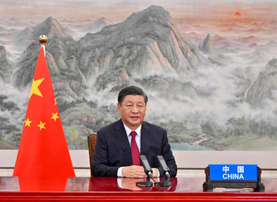 Le président chinois Xi Jinping s'est adressé samedi à la première session du 16e Sommet des dirigeants du Groupe des 20 (G20) par liaison vidéo.