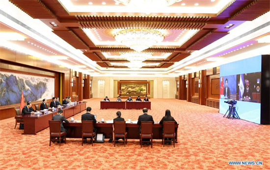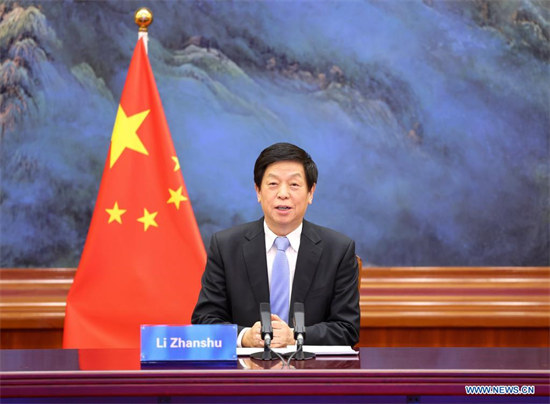 Li Zhanshu, président du Comité permanent de l'Assemblée populaire nationale (APN), s'est entretenu jeudi avec Ernesto Castro, président de l'Assemblée législative du Salvador, par liaison vidéo.