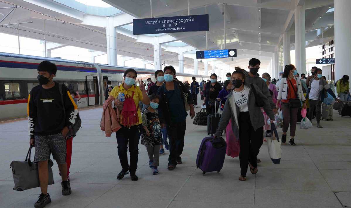 Les passagers débarquent d'un train à la gare de Vientiane, capitale du Laos, terminus du chemin de fer Chine-Laos. (Photo/Xinhua)