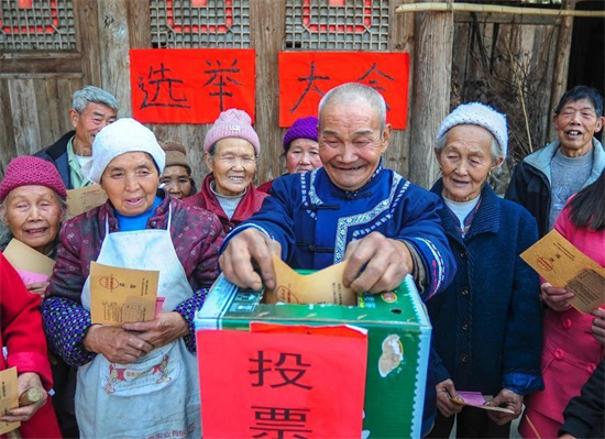 Le 5 décembre 2021 était le jour des élections pour la réélection des députés à l'Assemblée populaire au niveau des comtés et des cantons du comté autonome Miao et Tujia de Youyang, dans la municipalité de Chongqing (sud-ouest de la Chine). La photo montre des villageois participant activement au vote. (He Yi/Pic.people.com.cn)
