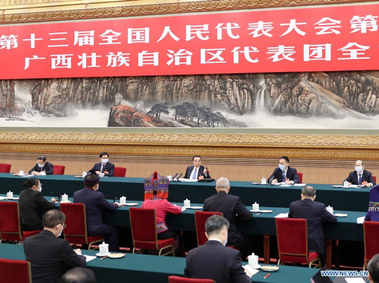 M. Li, également membre du Comité permanent du Bureau politique du Comité central du Parti communiste chinois, a tenu ces propos en se joignant aux législateurs de la région autonome Zhuang du Guangxi, lors d'une délibération en groupe sur le rapport d'activité du gouvernement, durant la cinquième session en cours de la 13e Assemblée populaire nationale, l'organe législatif national.