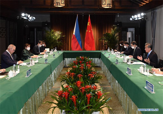 Le conseiller d'Etat et ministre des Affaires étrangères de la Chine, Wang Yi, s'est entretenu dimanche avec le ministre philippin des Affaires étrangères, Teodoro Locsin, à Tunxi, dans la province chinoise de l'Anhui (est).