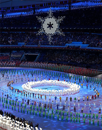Un spectacle lors de la cérémonie d'ouverture des Jeux olympiques d'hiver de Beijing 2022, au Stade national, à Beijing, capitale chinoise, le 4 février 2022. (Wang Yuguo/Xinhua)