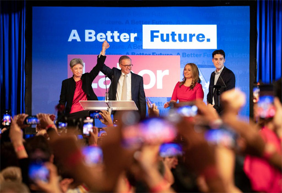 Anthony Albanese à un rassemblement le 21 mai 2022 à Sydney, en Australie, après avoir remporté les élections fédérales australiennes. (Xinhua/Bai Xuefei)