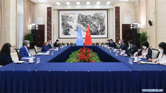 Le conseiller d'Etat et ministre des Affaires étrangères de la Chine, Wang Yi, a rencontré, lundi à Guangzhou, Michelle Bachelet, la Haute-Commissaire des Nations unies aux droits de l'homme.