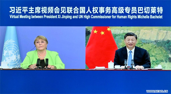 Le président chinois, Xi Jinping, a tenu une rencontre avec la Haute-Commissaire des Nations unies aux droits de l'homme, Michelle Bachelet, par liaison vidéo, mercredi, à Beijing.
