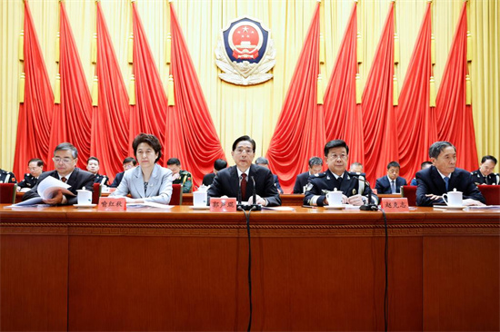 Guo Shengkun, membre du Bureau politique du Comité central du PCC et chef de la Commission des affaires politiques et juridiques du Comité central du PCC, a prononcé un discours lors de la réunion.