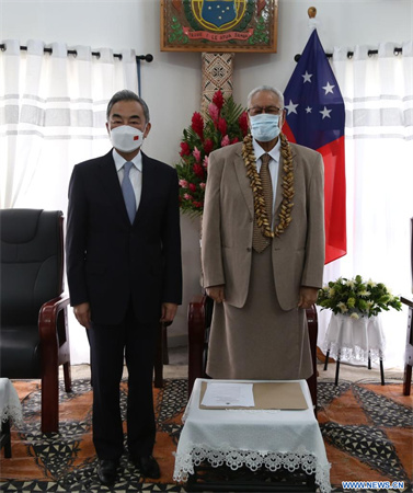Lors de sa rencontre avec le conseiller d'Etat et ministre chinois des Affaires étrangères Wang Yi, le chef d'Etat samoan Tuimalealiifano Sualauvi Vaaletoa II a déclaré que les Samoa et la Chine avaient entretenu des relations étroites et solides, avec des résultats fructueux dans le cadre d'une coopération mutuellement bénéfique, démontrant l'importance de l'égalité et du respect mutuel dans les relations entre pays.