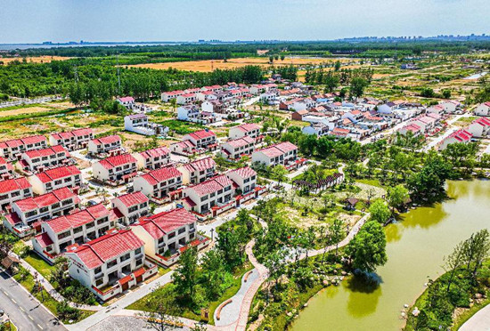 Le 30 mai 2022, la photo montre un nouveau type de communauté résidentielle rurale offrant un cadre de vie agréable dans la ville de Suqian de la province du Jiangsu (dans l'est de la Chine). (Chen Hong/Pic.people.com.cn)