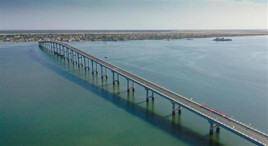 Le pont de Foundiougne, long de 1 600 mètres, est le plus long pont du Sénégal. Il a été inauguré le 26 mars 2022. Le pont a été financé par le Sénégal et la Chine par le biais de la Banque d'exportation et d'importation de Chine (China EximBank) et construit par une entreprise chinoise. (Photo fournie par Wuhan Engineering Co., Ltd. du China Railway Seventh Group)