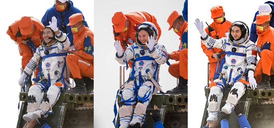 Zhai Zhigang, le commandant de la mission, et Wang Yaping, la première femme à être entrée dans la station spatiale chinoise, ont été honorés par des médailles de deuxième classe pour leurs réalisations aérospatiales, tandis que Ye Guangfu a re?u une médaille de troisième classe et le titre honorifique d'"astronaute héro?que".