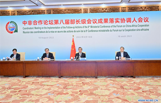 Jeudi, lors de la réunion des coordinateurs sur la mise en oeuvre des résultats de la 8e conférence ministérielle par liaison vidéo, M. Wang a indiqué que la Chine et l'Afrique ont mis en application ensemble des résultats avec de bons progrès et apporté des bénéfices tangibles au peuple africain.