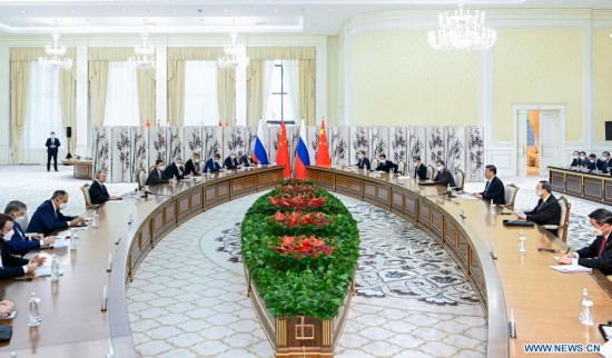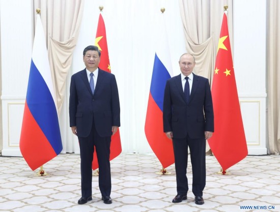 Les deux chefs d'Etat se sont rencontrés au Forumlar Majmuasi Complex à Samarcande pour échanger des points de vue sur les relations sino-russes et les questions internationales et régionales d'intérêt commun.