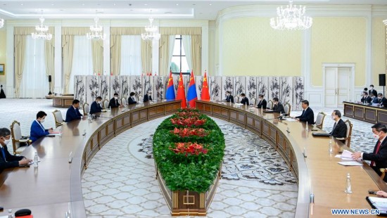 Les relations de la Chine avec la Mongolie occupent une place importante dans sa diplomatie de voisinage, a-t-il déclaré, ajoutant que son pays était prêt à travailler de concert avec la partie mongole pour faire progresser leurs liens traditionnels d'amitié, élargir leur coopération mutuellement bénéfique dans un esprit d'amitié, de sincérité, de bénéfices mutuels et d'inclusion, et faire franchir une nouvelle étape au partenariat stratégique global Chine-Mongolie.
