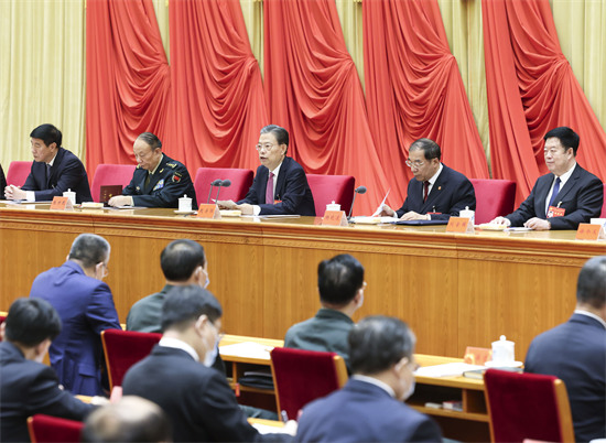 Zhao Leji, membre du Comité permanent du Bureau politique du Comité Central du PCC et secrétaire de la CCCD, a prononcé un discours lors de la réunion.