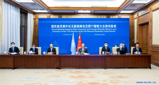 Le conseiller d'Etat et ministre des Affaires étrangères de la Chine, Wang Yi, a rencontré lundi, par liaison vidéo, Csaba Korosi, président de la 77e session de l'Assemblée générale de l'ONU.