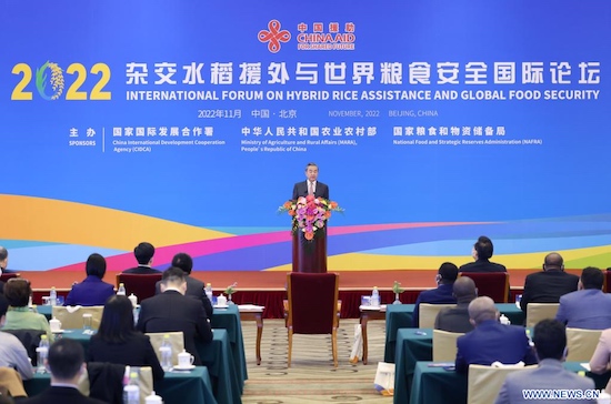 Le président chinois, Xi Jinping, a délivré un discours écrit au Forum international sur l'aide fournie par le riz hybride et la sécurité alimentaire mondiale, qui s'est tenu samedi à Beijing.