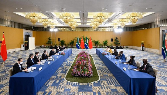 La Chine est prête à renforcer son partage d'expériences en matière de gouvernance avec l'Afrique du Sud, et soutient celle-ci dans la recherche d'une voie de modernisation adaptée à ses conditions nationales, a-t-il indiqué. Les deux pays doivent développer une meilleure synergie entre l'initiative chinoise "la Ceinture et la Route" et le Plan de reconstruction et de relance économique de l'Afrique du Sud, coopérer plus étroitement en matière de commerce, d'investissements et d'énergie, faire avancer l'application des décisions prises lors du Forum sur la coopération sino-africaine (FCSA) en Afrique du Sud, aider les entreprises chinoises à investir et à faire des affaires en Afrique du Sud, et augmenter l'importation de produits sud-africains de qualité.