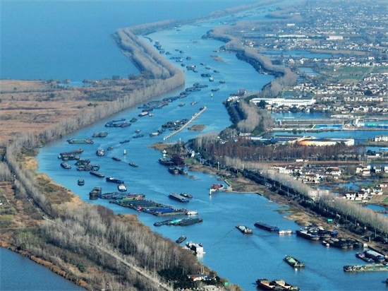 Des cargos vont et viennent sur la section de Yangzhou du Grand Canal Beijing-Hangzhou, dans la province du Jiangsu (est de la Chine), constituant une scène animée, le 18 décembre. (Meng Delong / Pic.people.com.cn)