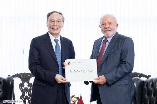 A l'invitation du gouvernement brésilien, le vice-président chinois Wang Qishan, représentant spécial du président chinois Xi Jinping, a assisté à la cérémonie d'investiture du nouveau président brésilien Luiz Inacio Lula da Silva et l'a rencontré dans la capitale Brasilia.