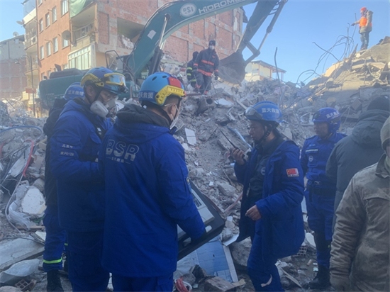Le 9 février, à 5h30 heure locale, l'équipe de sauvetage Blue Sky, qui comprend trois membres de l'équipe de sauvetage Blue Sky de Hainan, est arrivée à l'aéroport de Malatya en Turquie et a immédiatement lancé des opérations de sauvetage en groupe. Malatya est la ville la plus proche de l'épicentre du tremblement de terre en Turquie, à seulement 38 km de celui-ci, et avec un grand nombre de batiments détruits.