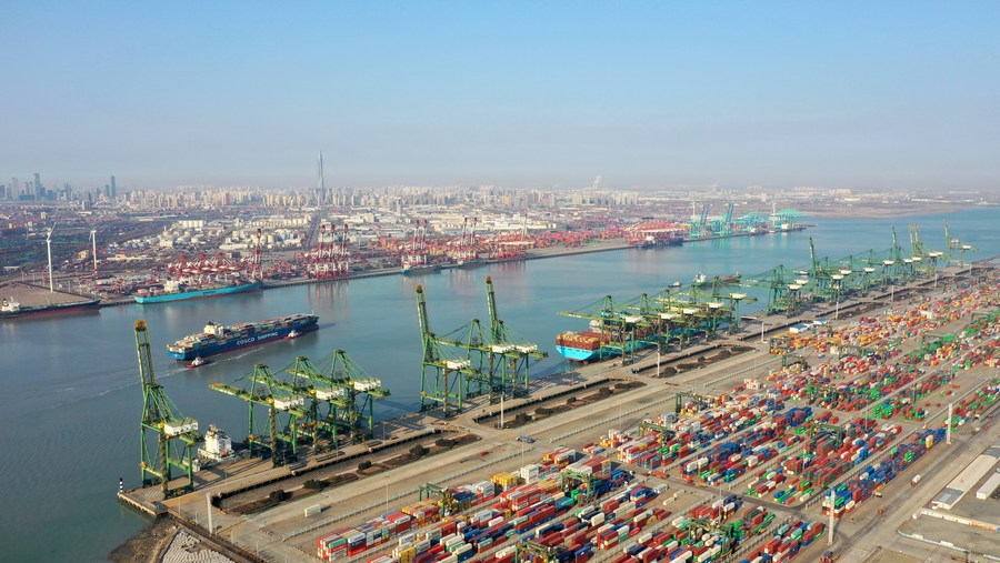 Un terminal à conteneurs dans le port de Tianjin, à Tianjin, dans le nord de la Chine, le 10 janvier 2023. (Photo : Zhao Zishuo)